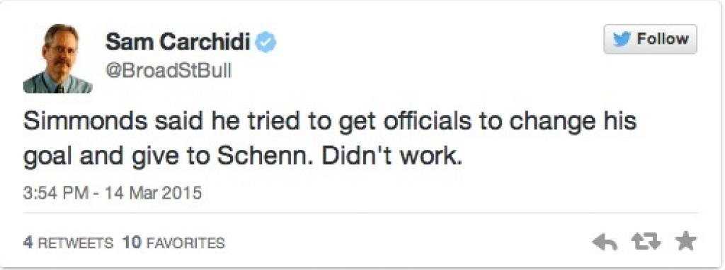The Philadelphia Flyers will get goals whichever way they can, even if it means a few fans lose their headgear. After Brayden Schenn scored what he thought was his third goal of the game against the Detroit Red Wings, the hats began raining down from