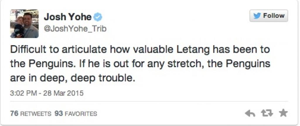 Letang is undergoing evaluations at a hospital and the team doesn’t anticipate more news until Sunday. In any case the outlook is not optimistic, just take one look at Letang and you see he's in some serious agony.
