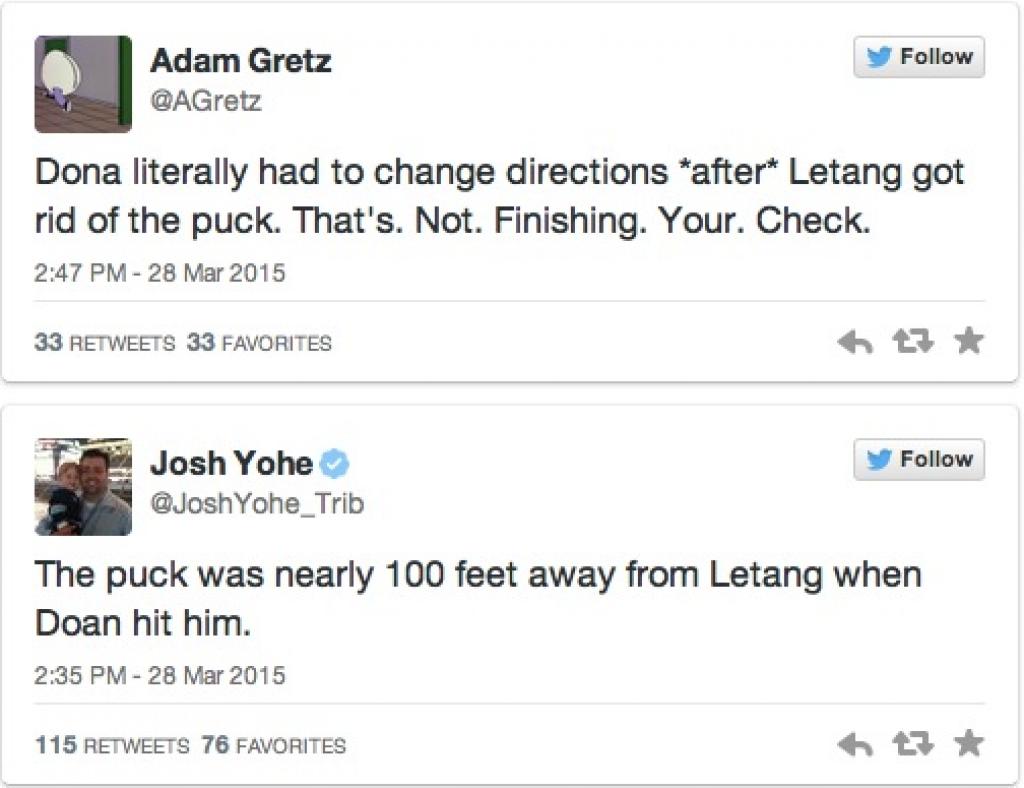 In a truly scary incident a player was rushed to the hospital after being laid out with a late hit and sent crashing awkwardly into the end boards. Penguins defenseman Kris Letang was taken to the hospital after a collision with Shane Doan in Saturda